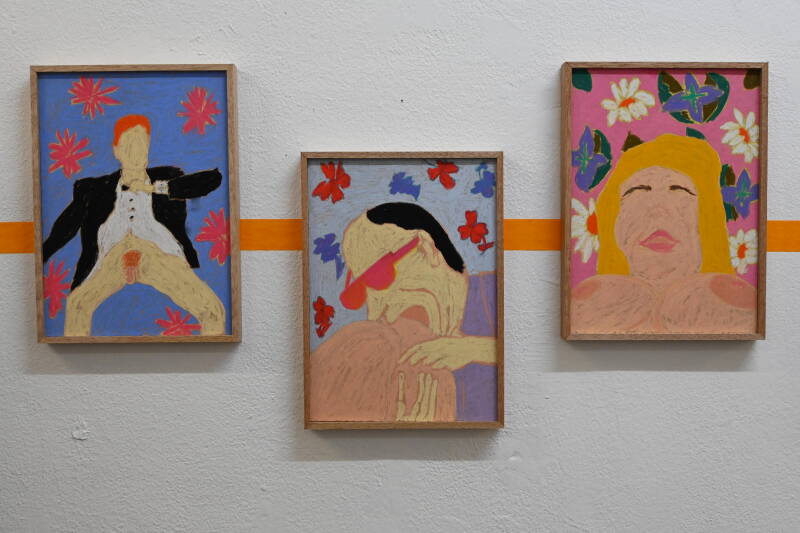 Gentleman, Eater and Boobs, 2023, (soft pastel on wooden plate, 21cm x 30cm)